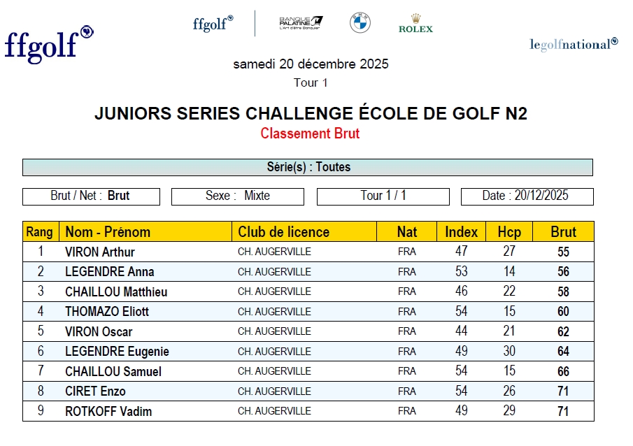 Actuellement il manque Oscar VIRON dans les résultats de la FFG, une correction interviendra dans quelques jours. Nous sommes désolés pour cet incident.