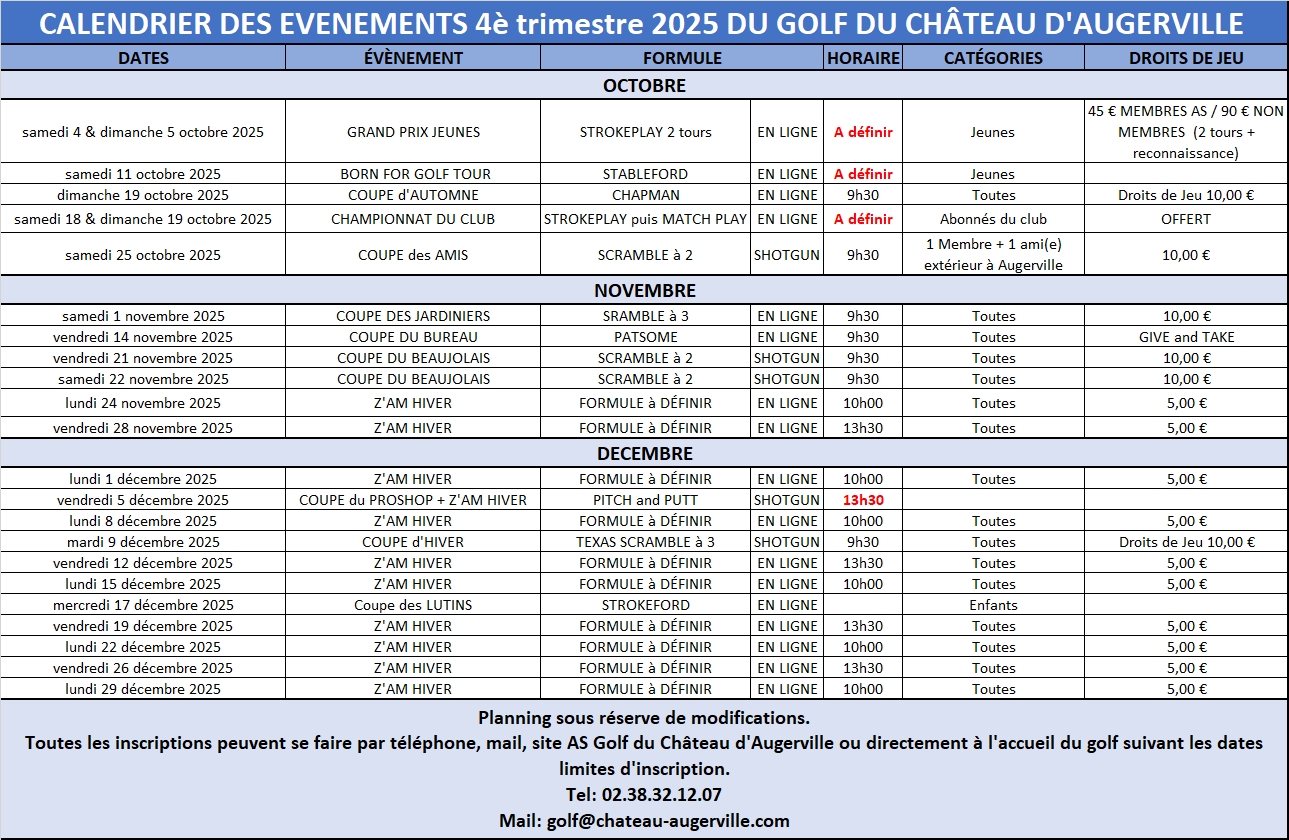 🏌️♀️-Championnat du club 2025 – Inscriptions-règlement